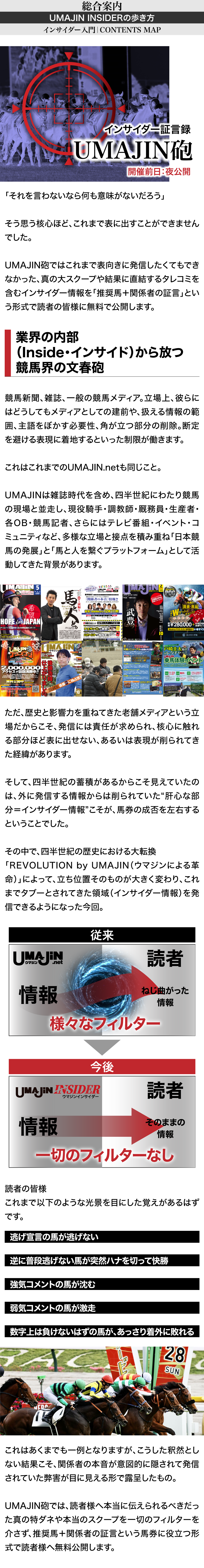 【総合案内】UMAJIN稽古総見紹介 【総合案内】馬人黒箱 【総合案内】種牡馬インサイダー年鑑